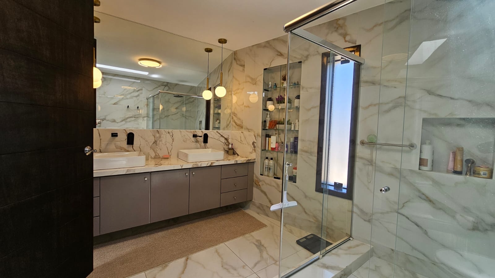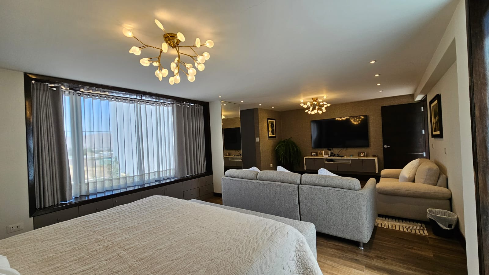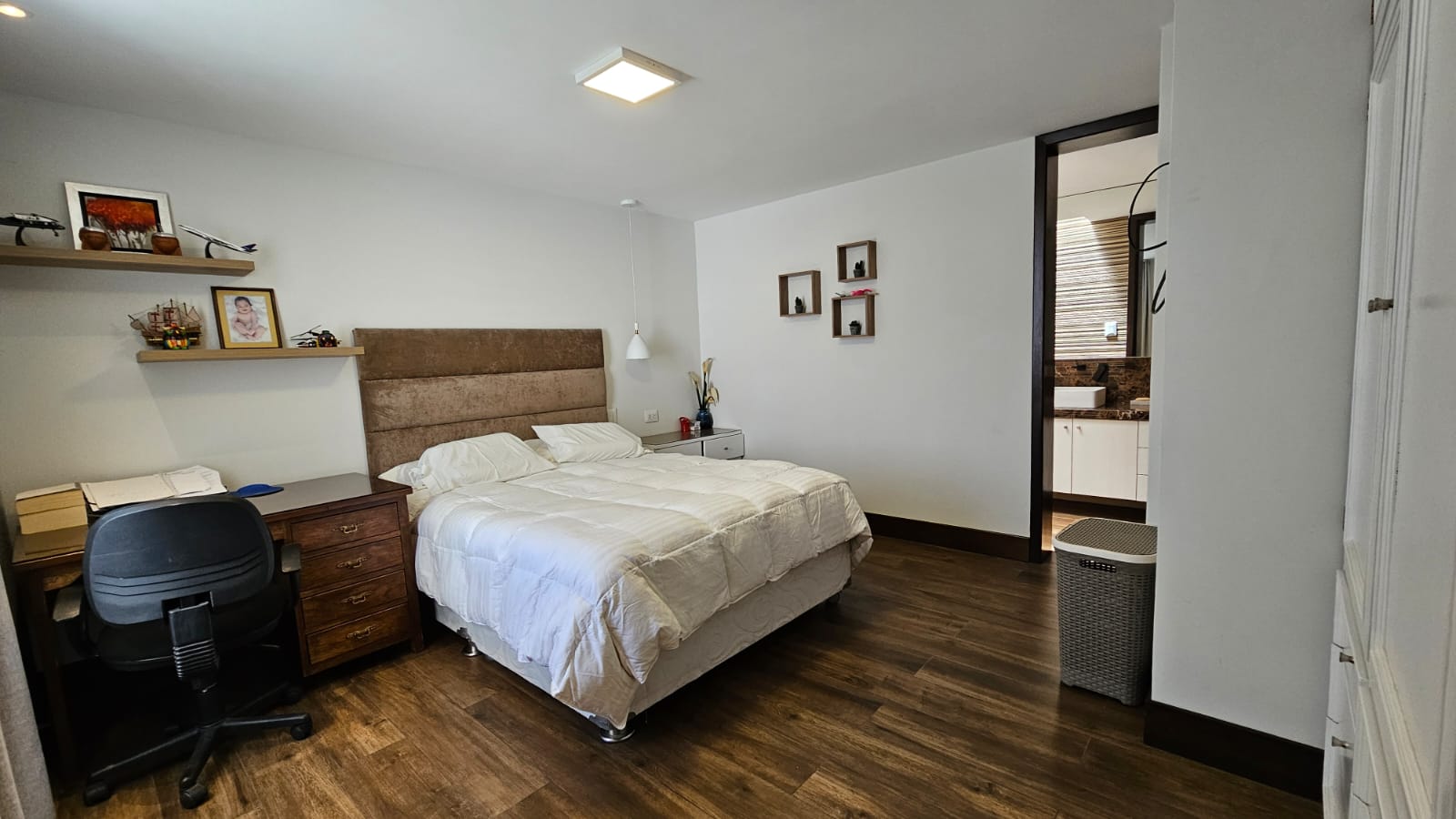 📺 Sala de estar con ambiente acogedor, 📦 cuarto de depósito adicional, 🛁 dos cómodos dormitorios, cada uno con baño privado, y 👑 dormitorio principal de gran tamaño, con sala de estar privada, amplio walk-in closet 👗👔 y baño incorporado 🛀.