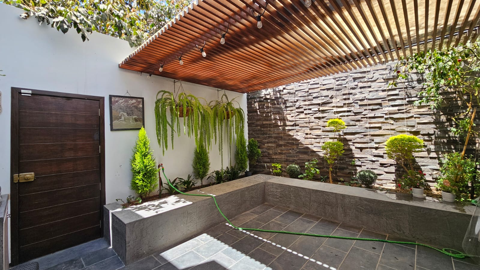 ✨ Elegante hall de ingreso, 🛋️ amplia sala y comedor con excelente iluminación natural, 🍽️ moderna cocina de concepto abierto finamente equipada, 🌿 terraza ideal para reuniones sociales, 🚻 baño de visitas, 📦 depósito, 🌷 jardín privado, 🛏️ dormitorio con baño incorporado y 🚗 cochera para dos vehículos.